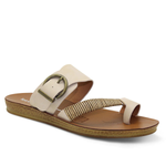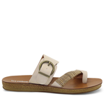 Los Cabos captures the spirit of fun in the sun with their Bria sandal. The ease of a slip-on is given a touch of natural beauty with our woven bamboo wrap gracing the toe strap, whilst the antique round buckle on the back strap adds a treasure box accent. Ideal for resort escapes, beach walks or just a shoe to slip on when you need to rush out the house.